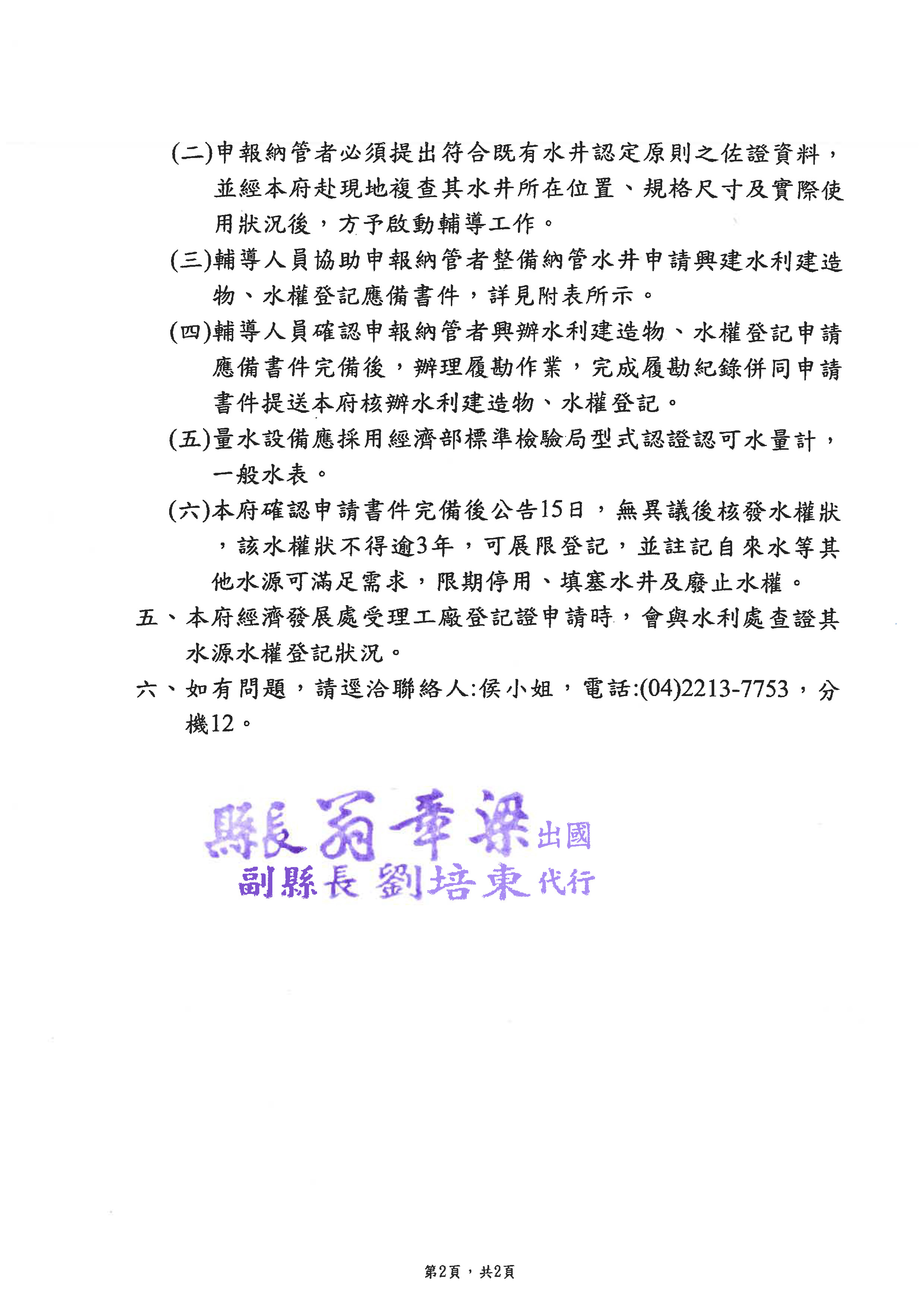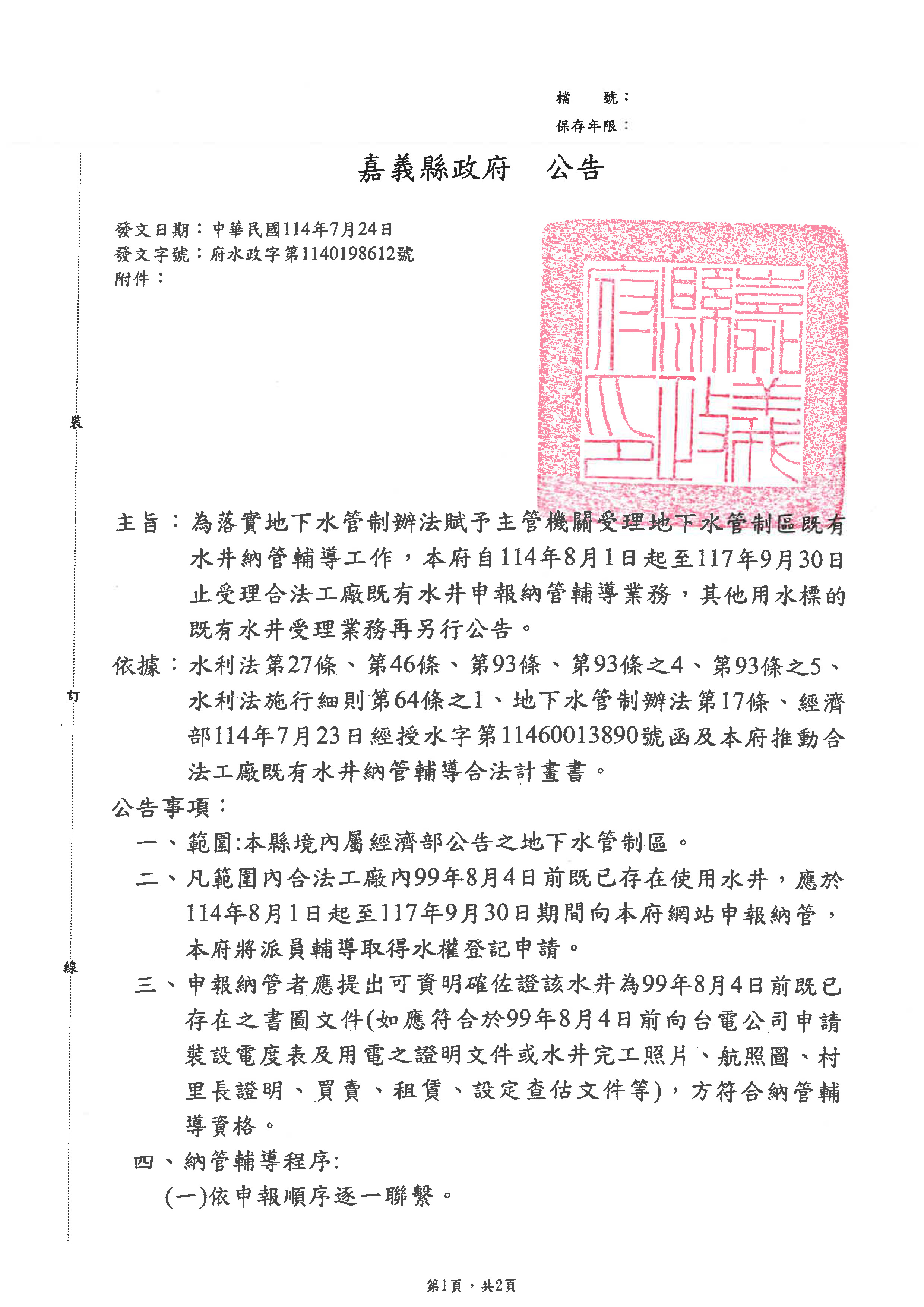 合法工廠既有水井納管意願登記